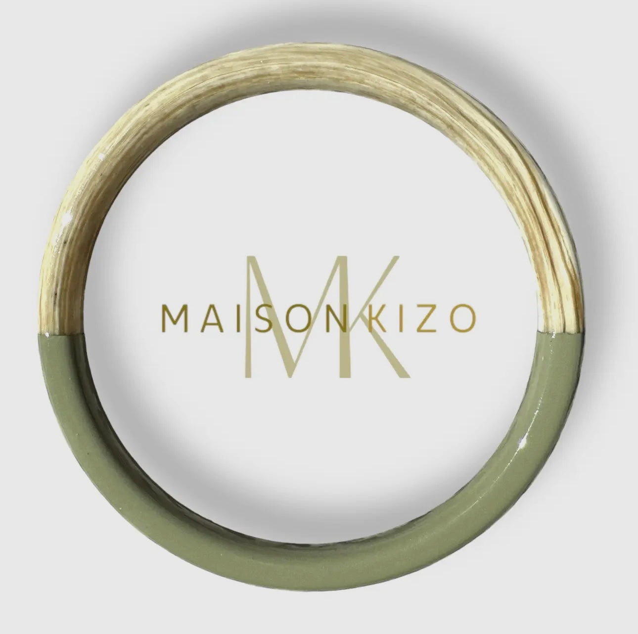 Each bangle is sustainably sourced from recycled buffalo horn. The bone is polished and enhanced with naturally dyed lacquer in rich, eye-catching hues. The Moss Green is a soft, earthy shade that evokes quiet forest paths and sun-dappled leaves. This gentle, muted green offers a natural, grounding tone that blends beautifully with others. Subtle variations in colour, grain, and size reflect the handcrafted nature of each bangle, making each very unique.
