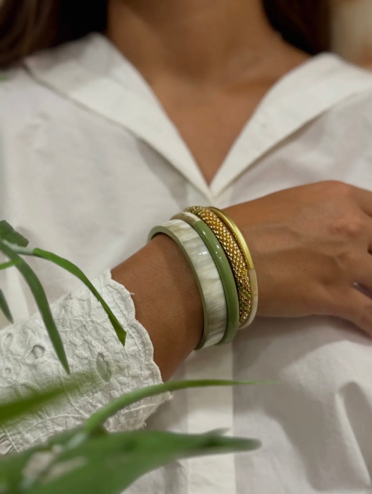 Dual-Tone Horn Bangle - Natural Bone & Moss Green