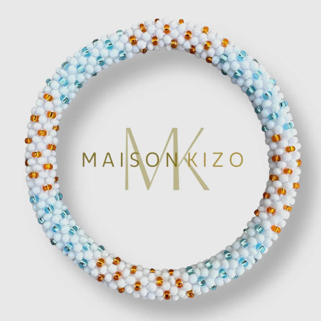White with Sky Blue and Bronze Handcrafted Roll-On Glass Beaded Bracelet