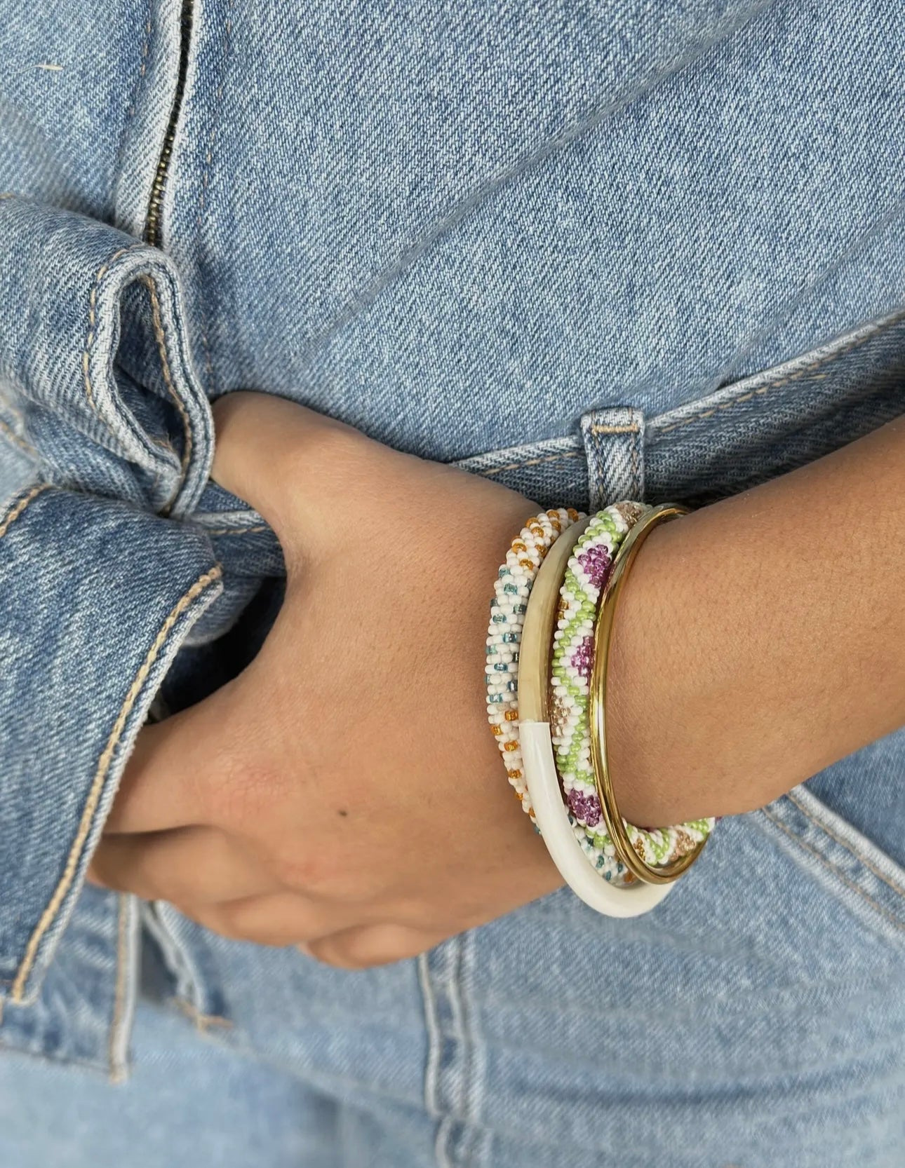 Comfortable, durable, and full of joy, these roll-ons slip on easily and adjust to your wrist thanks to the gentle stretch of the cotton thread.