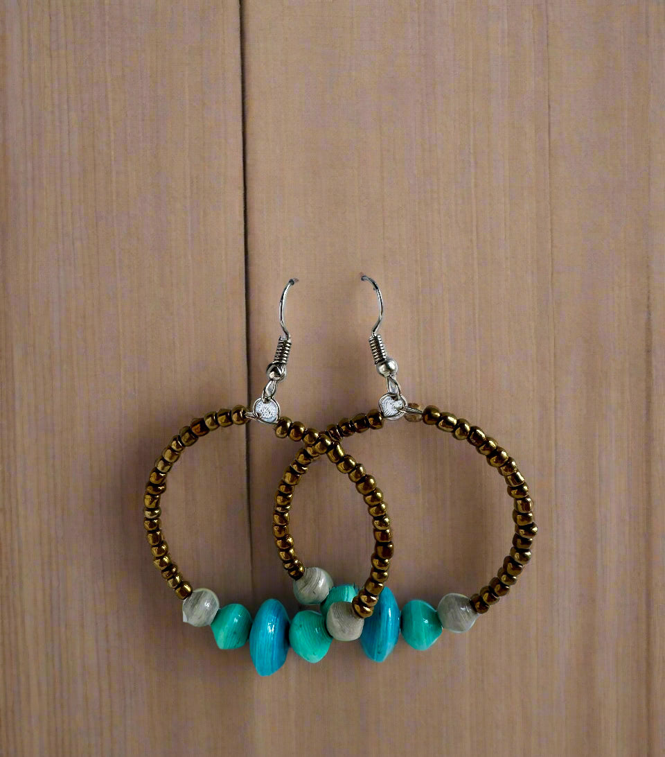 Our go-anywhere, fun, funky and stylish hoops are a big hit! They are lightweight and easy to wear with gold glass, durable paper beads, and stainless wires. Our Partners at Project Have Hope in Uganda handcrafted these sturdy and colourful earrings.  One of our favourites....