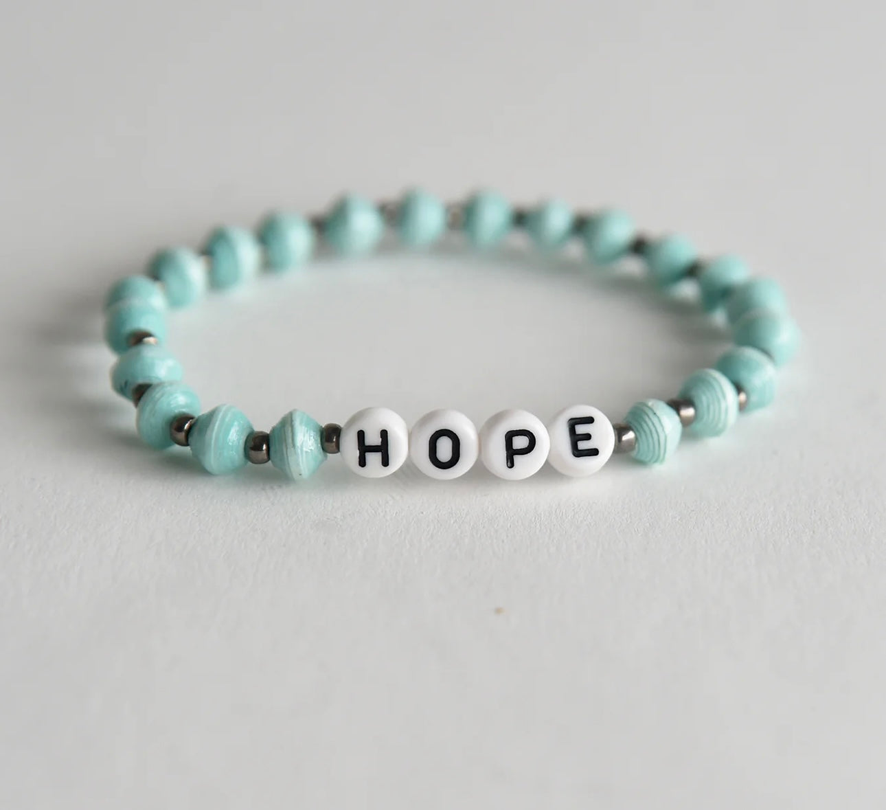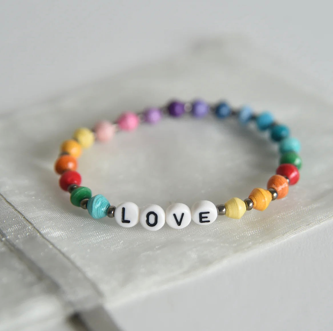 Crafted with care and meaning, each bracelet features delicately handcrafted paper beads, strung on durable, stretchy elastic for a soft, comfortable fit. Every bracelet is a small work of art that carries a big message. Lightweight, vibrant, and full of intention, these bracelets are an uplifting accessory you can wear daily.