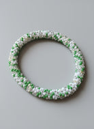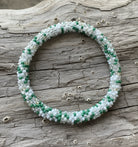Enchanting Green and White with Silver Beaded Roll-on Bracelet