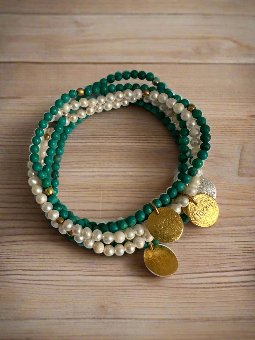 This collection features our bestselling stackable gemstone bracelets, beloved for their versatility and vibrant hues. The ever-popular five-part harmony bracelet/necklace duos and the elegant Audry bracelets bring together the classic beauty of freshwater pearls with the grounding power of hand-selected gemstones—perfect for layering or wearing solo.