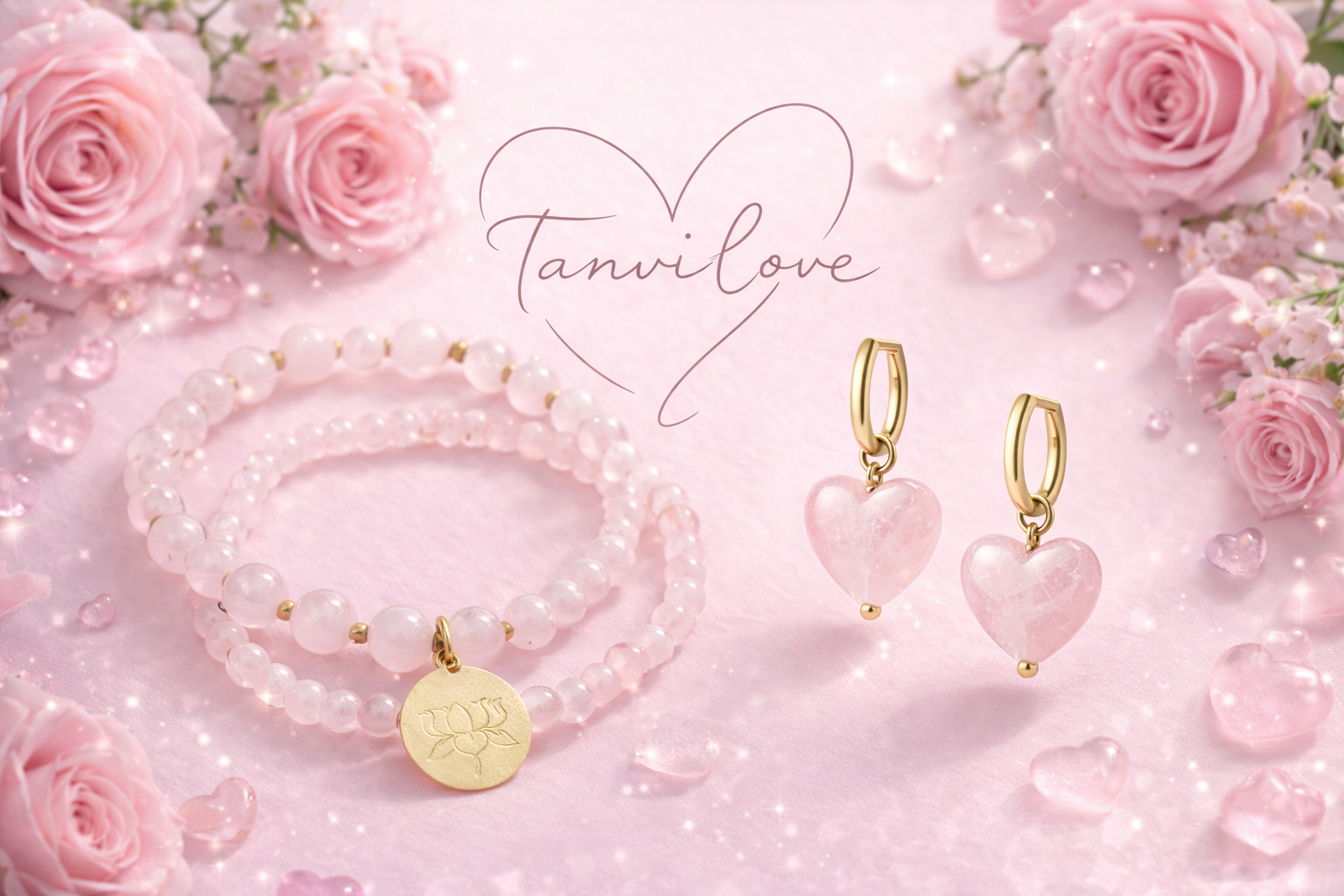 Deluxe Rose Quartz Love Bracelet and Earrings Set