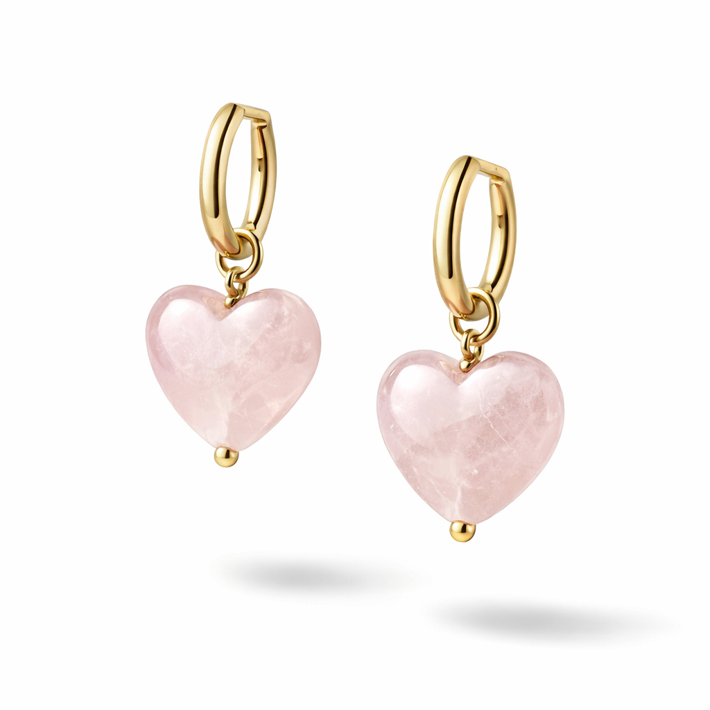 These earrings emanate Calm, Love & Joy. Handcrafted rose quartz heart-shaped huggy earrings bring gentle energy and beauty to your everyday look. The soft pink hue of natural rose quartz makes these perfect for adding a touch of love and serenity to any outfit.