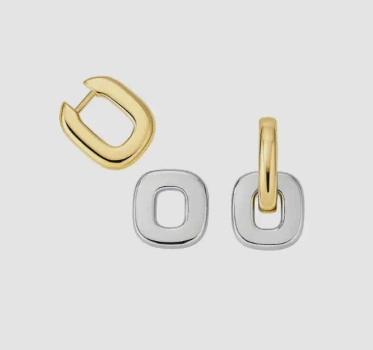 Chic, versatile and unique, these linked hoop earrings blend 18K Gold PVD and Silver Rhodium finishes for a sleek, modern look. Crafted in small batches in Canada, they are lightweight, hypo allergenic and tarnish resistant - perfect for effortless day-evening style.