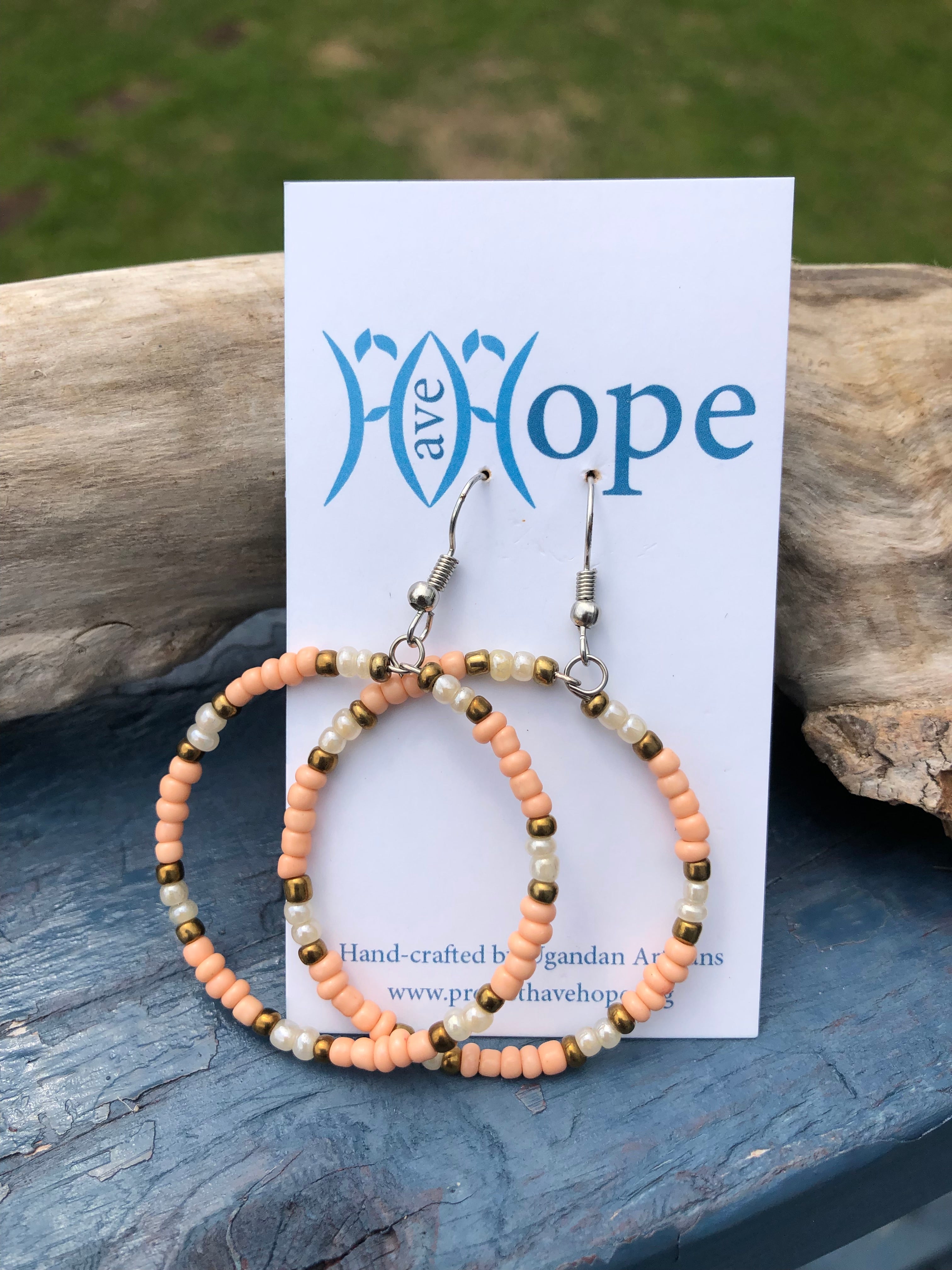 Our go-anywhere, funky and stylish hoops are a big hit! They are lightweight and easy to wear, featuring gold glass, recycled paper beads, and stainless steel wires. Their handcrafted charms add a little something special. They are made with love from our partners at Project Have Hope in Uganda.