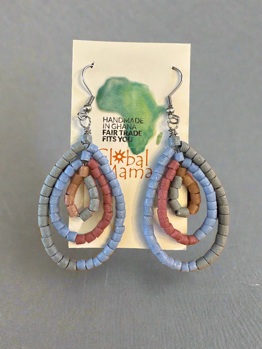 Lots of style and colour options with these glass beaded tear-shaped earrings. Great for hanging with your besties. Handcrafted in Ghana.