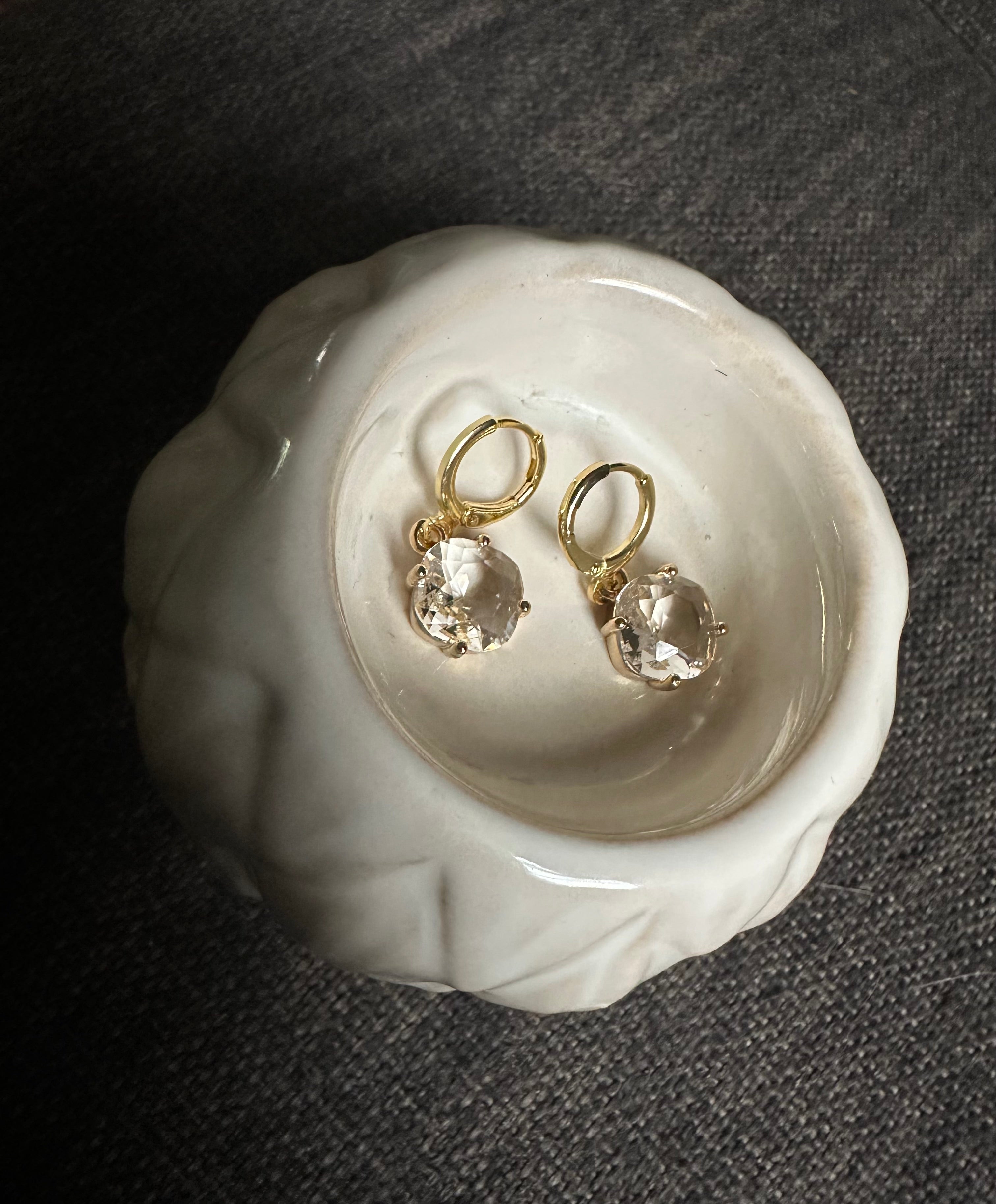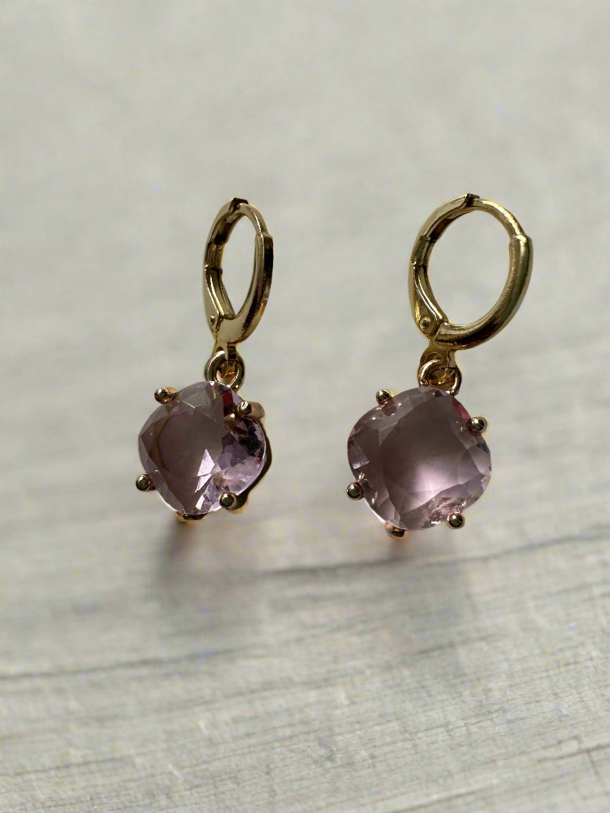 These charming handcrafted earrings bring just the right mix of subtle shimmer and effortless style. Featuring faceted crystals that sparkle with movement and set in elegant gold lever-back hooks, they are lightweight, sturdy, and easy to wear with just about anything—from casual brunches to evening soirées.