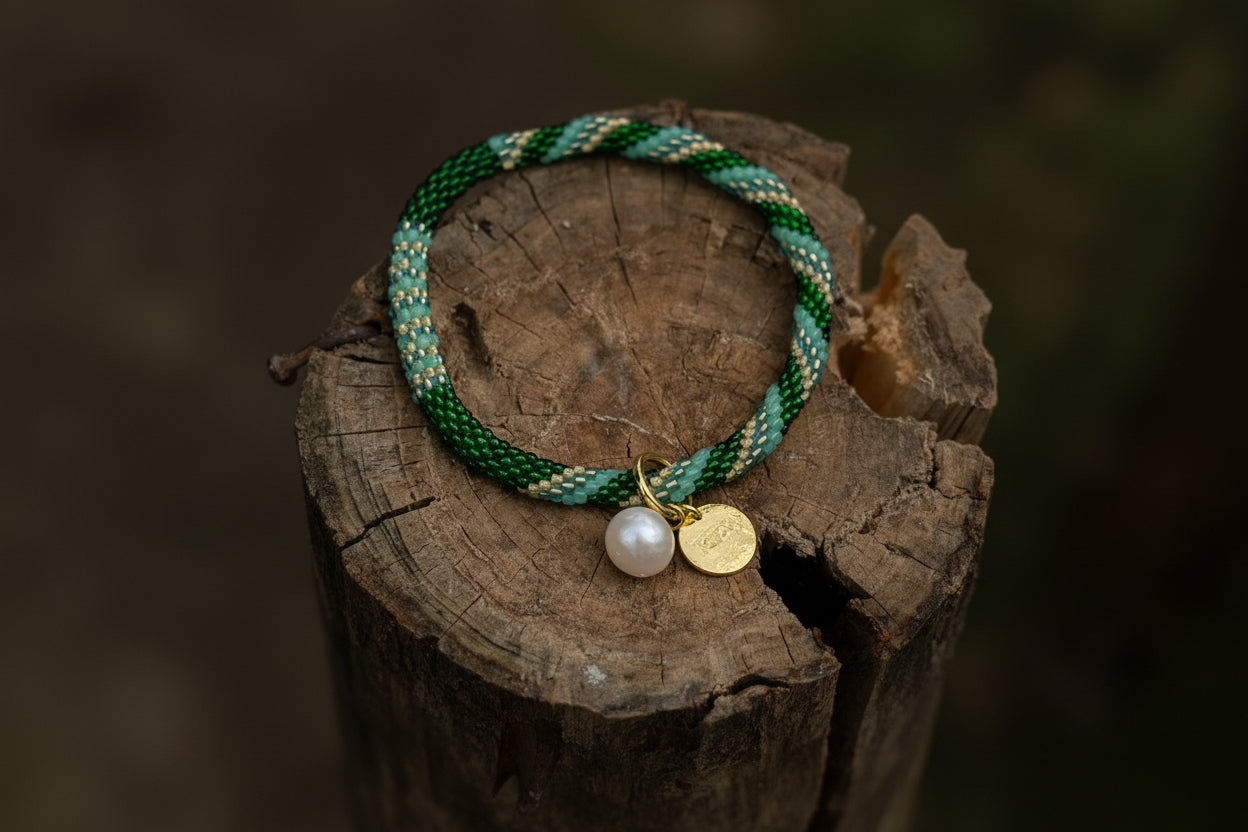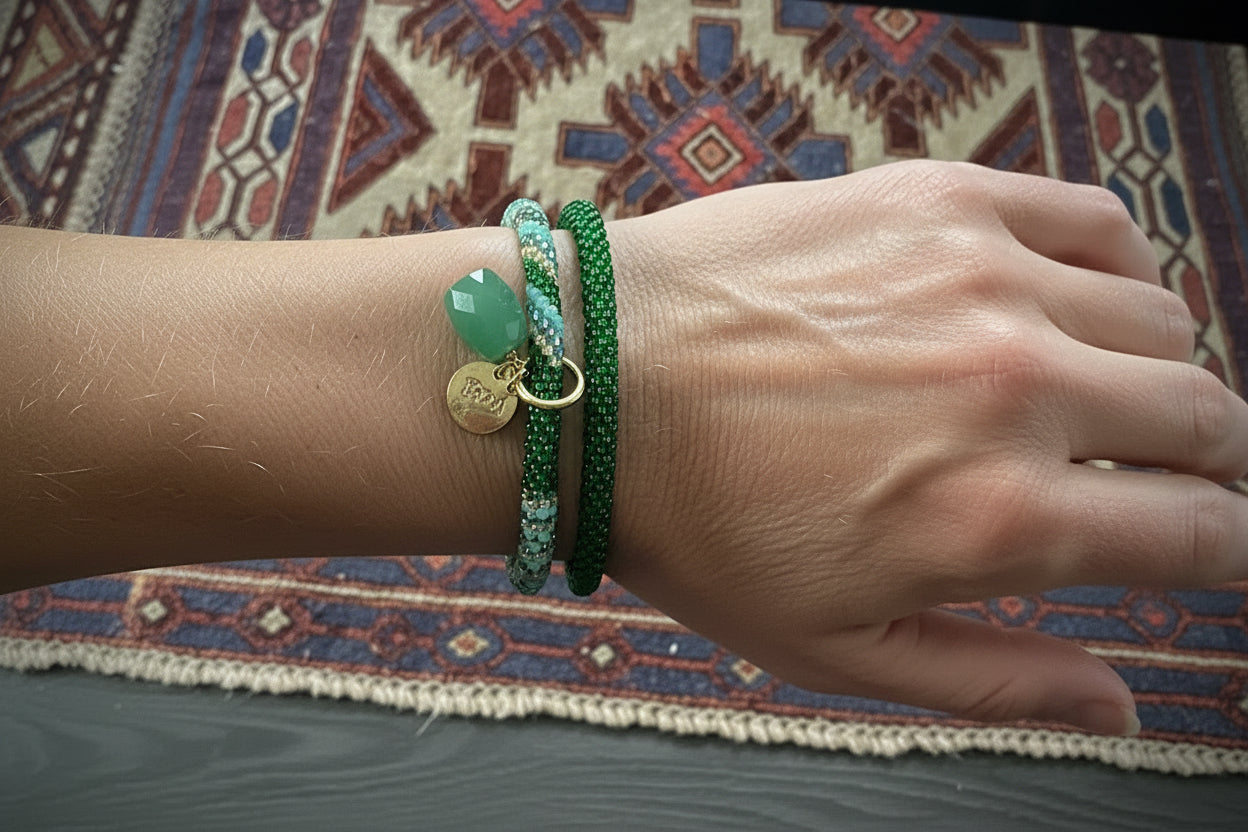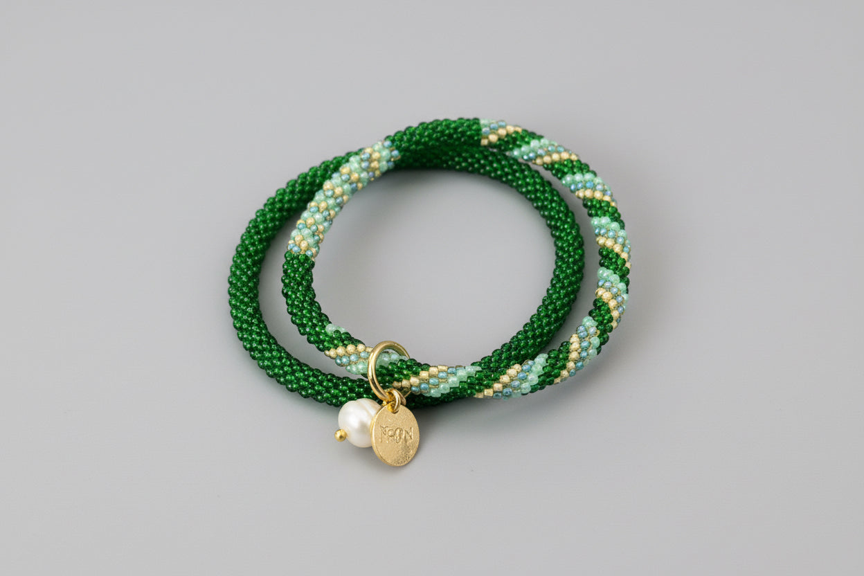 Handcrafted with love by talented women artisans at Beads for Life Nepal, our roll-on bracelets are made using glass beads and quality cotton thread. Beadwork is a cherished tradition in Nepal, passed down through generations—each piece is a beautiful expression of heritage and modern flair.