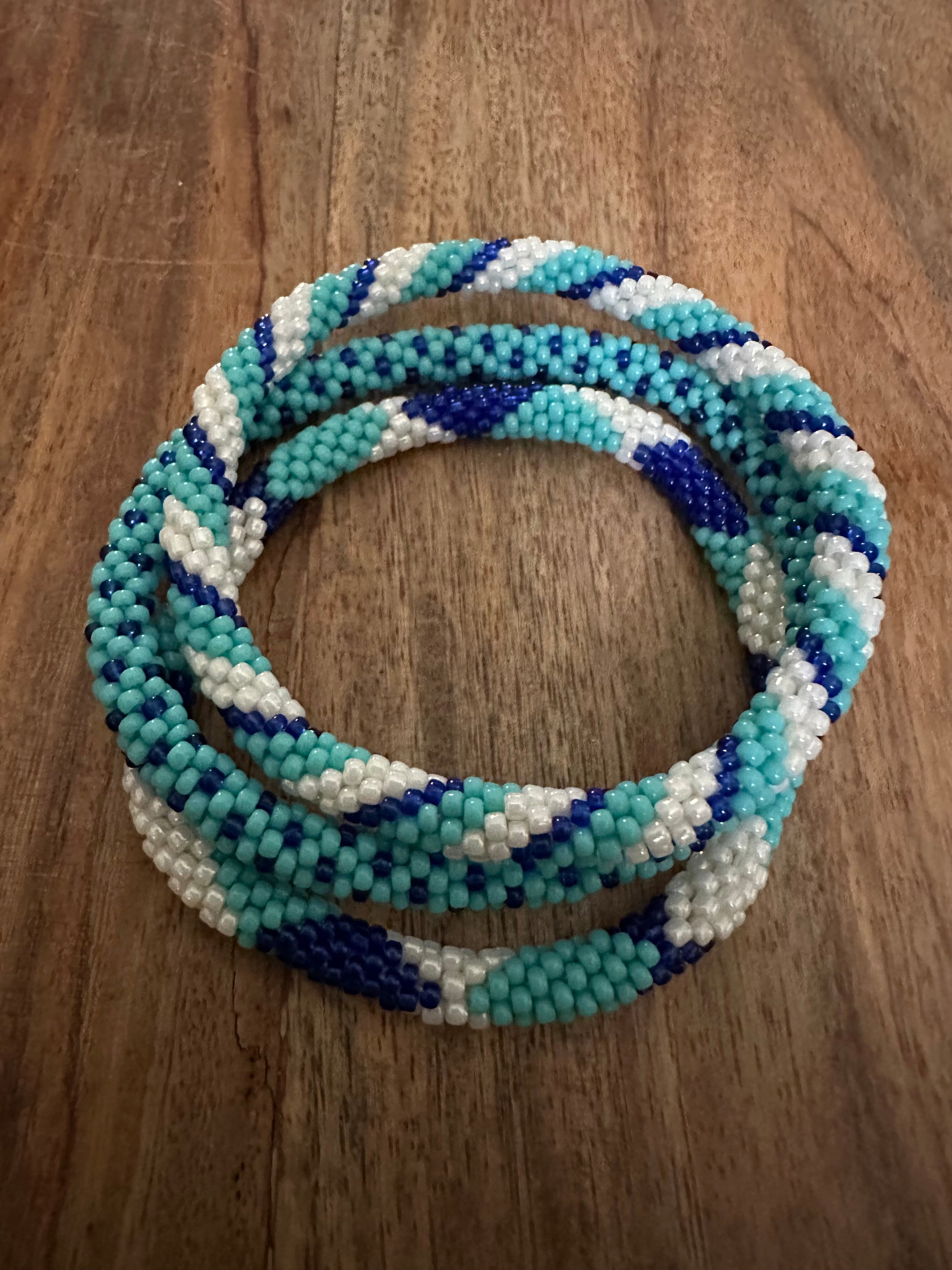 Handcrafted with love by talented women artisans in Nepal, Our roll-on bracelets are made using glass beads and quality cotton thread. Beadwork is a cherished tradition in Nepal, passed down through generations—each piece is a beautiful expression of heritage and modern flair.