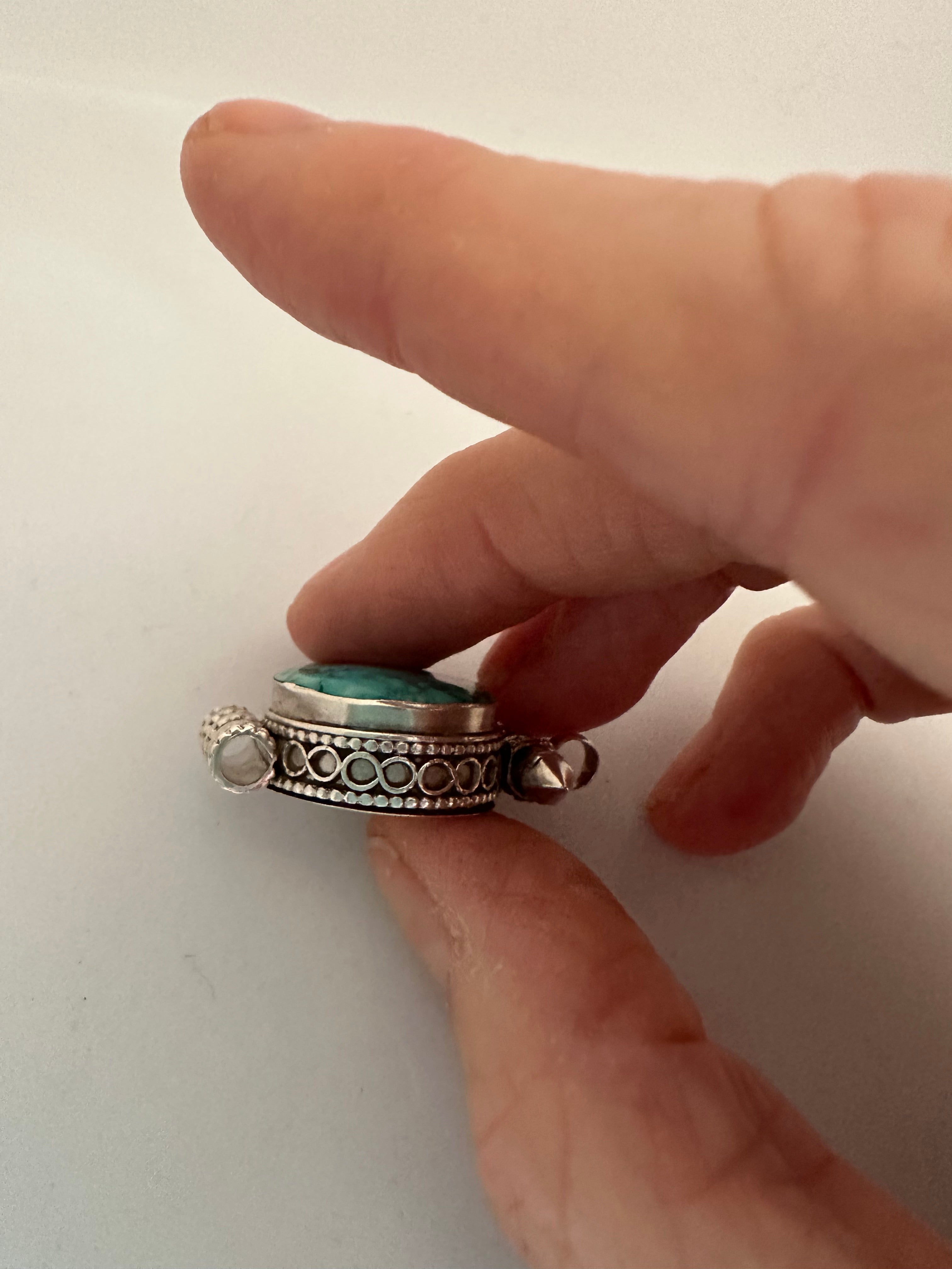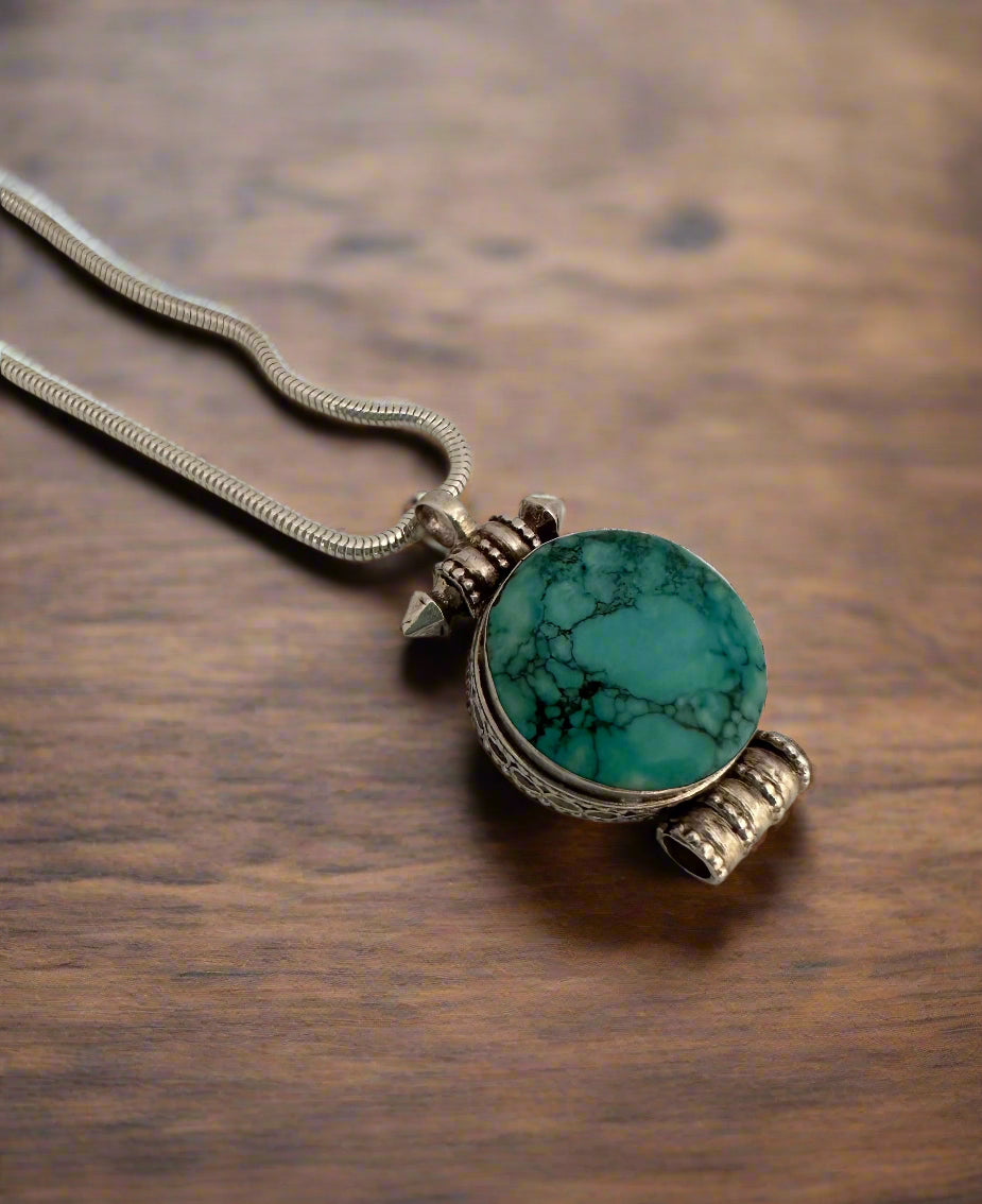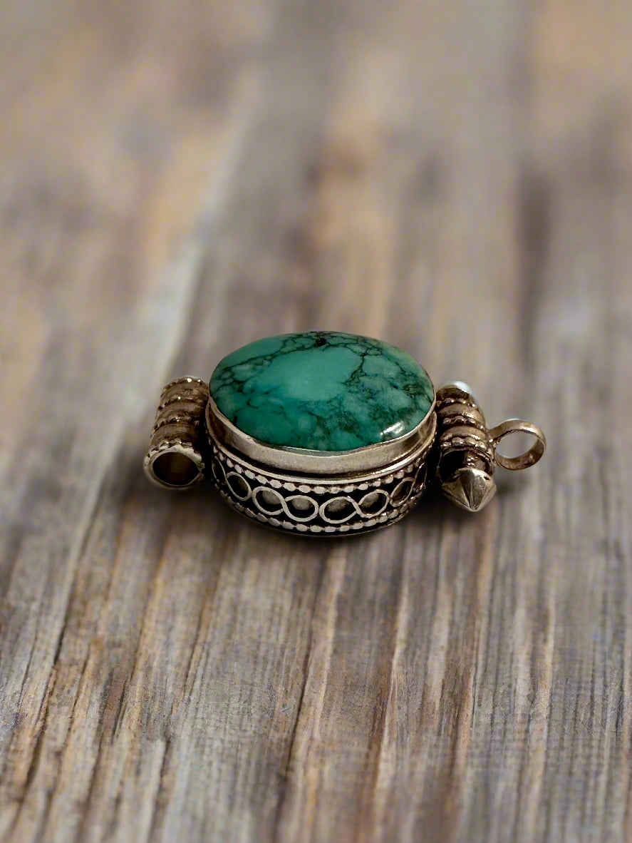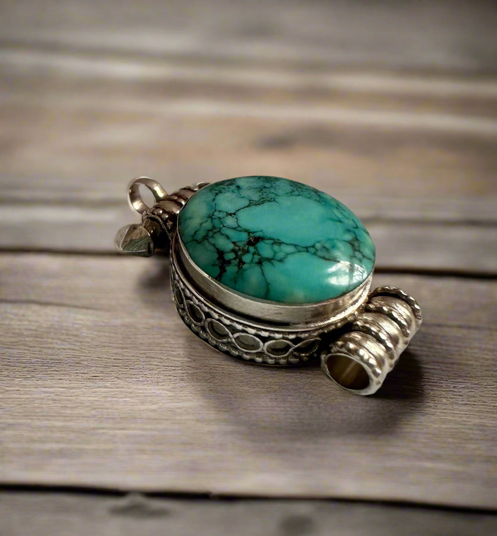 Small Silver Gau (Prayer Locket) – Turquoise or Coral