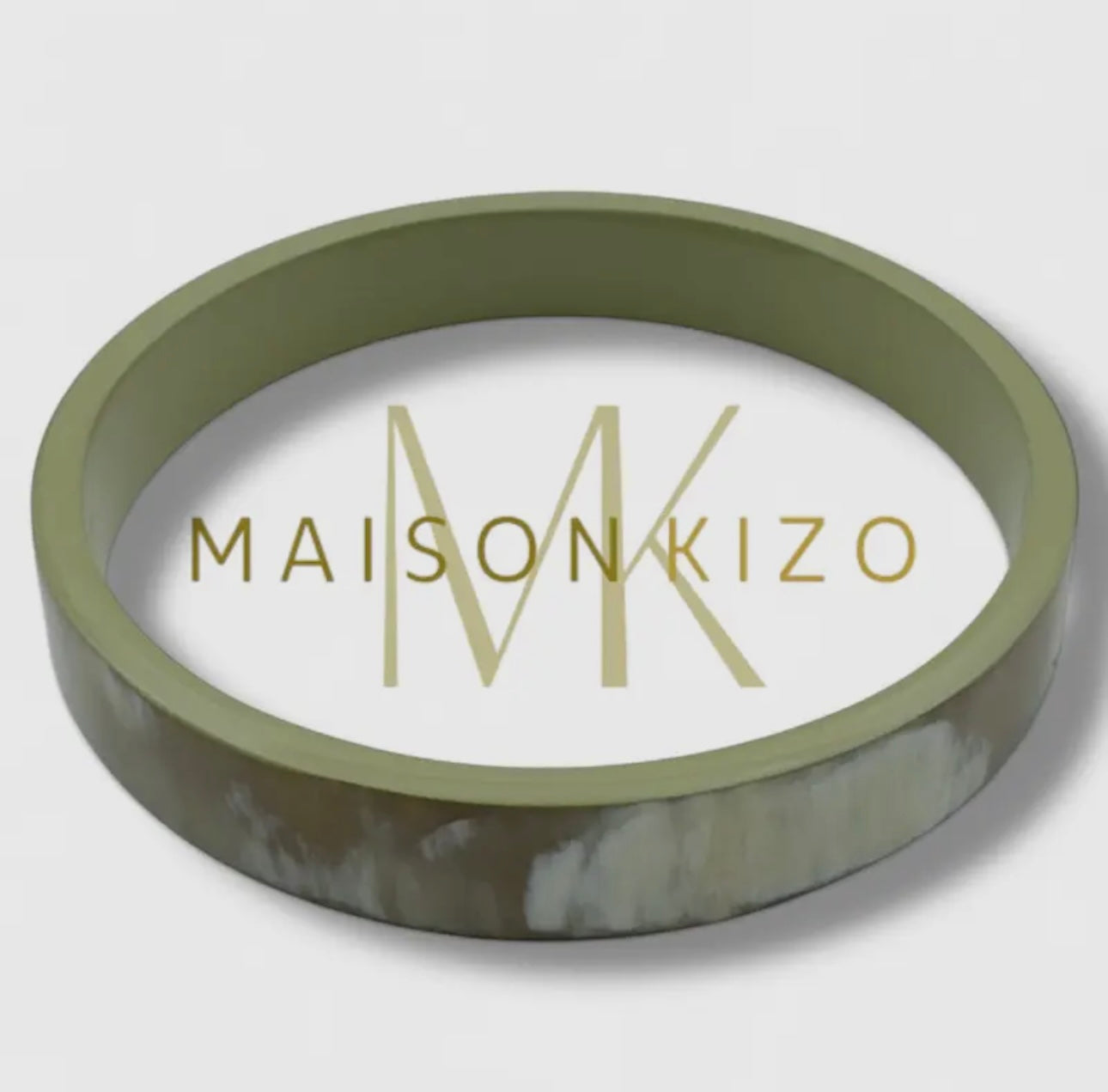 Wide Dual-Tone Horn Bangle - Natural Bone & Moss Green